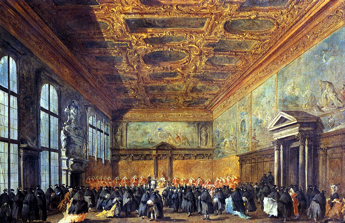GUARDI FRANCESCO Audience of the doge in the Council Hall in the Palace of rains. Venice, 1712-1793 Canvas, 67 x 11 cm. One of twelve patterns in a series of the Venice festivals. INV. 325 (MN) Avignon, 1714 – Paris, 1789