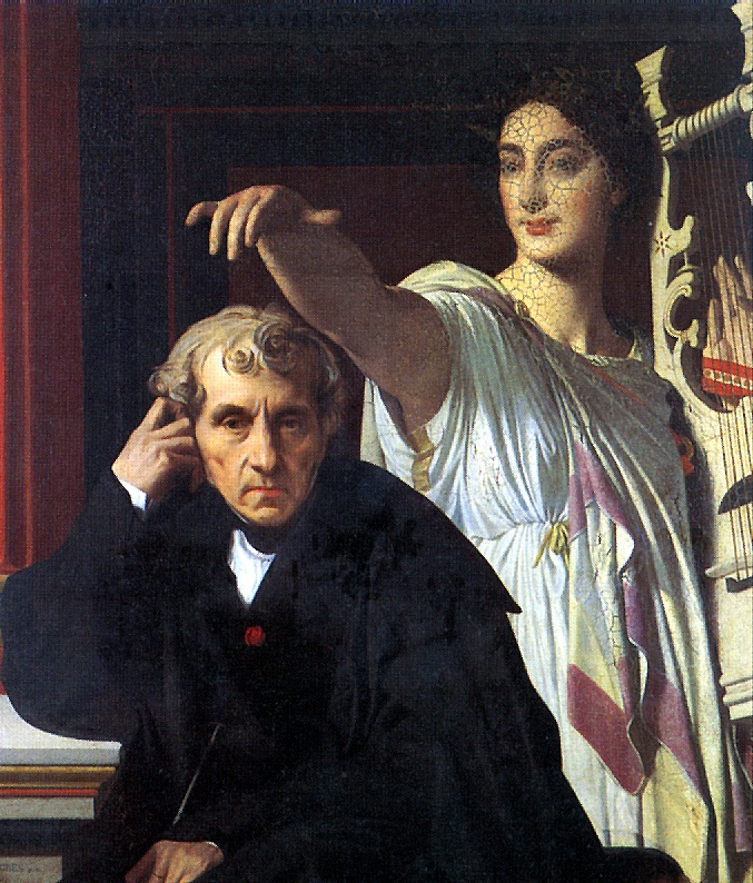 INGRES JEAN AUGUST DOMINIQUE Composer of Kerubini with a muse of lyrical poetry, 1842. Canvas, 15 x 94 cm. INV is acquired by Louvre in 1842. 5423 (G/AR) Montoban, 178 – Paris, 1867