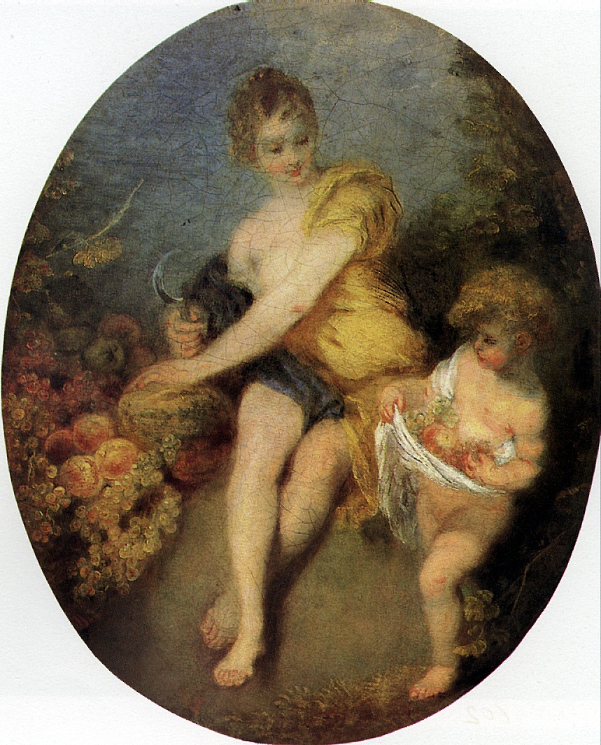 WATTEAU Fall. Canvas, 48 x 41 cm. M.I is passed under the will of doctor Louis Lekaz in 1869. 1128 (MN) Valenciennes, 1684 – Nozhan-sur-Marn, 1721