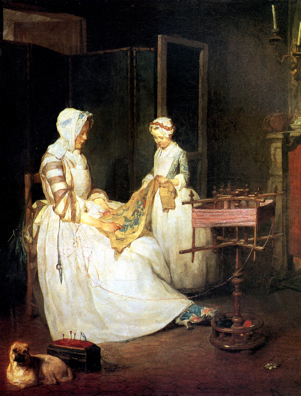 CHARDIN JEAN BATISTE SIMEON Hardworking mother. Canvas, 49 x 39 cm. It was exposed at Interior of 174; Louis XV’s collection. INV. 321 (MN) Paris, 1699-1779