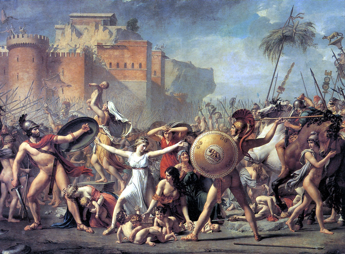DAVID JACQUES LOUIE Sabinyanki of stopping battle between Romans and sabinyanam, 1799. Canvas, 385 x 522 cm. It was exposed at Louvre from 1799 to 184, at Interior of 188. INV is acquired by Louvre in 1819. 3691 (MN) Paris, 1748 – Brussels, 1825