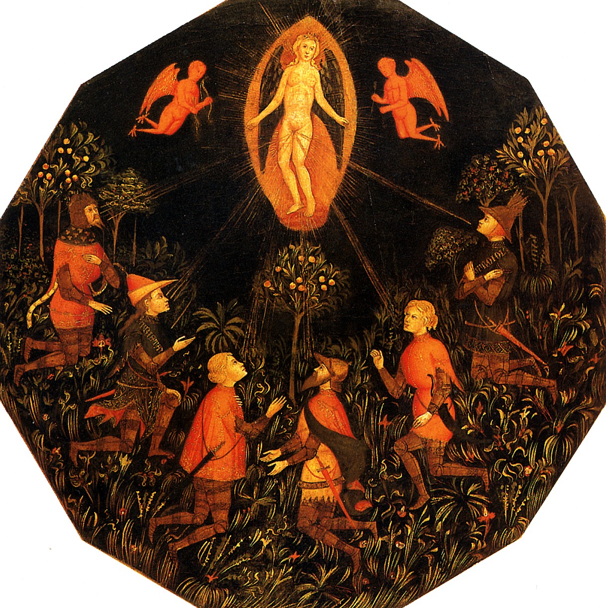 MASTER OF TAKING OF TARENTO Triumph of Venus with Tristan of worshipping it Achilles, Lancelot, Samson, Paris and Troilus. Worked with in Florence in the first half of the 14th century. The Wood, diameter is 51 cm. R.F came to Louvre in 1914. 289 (MN)