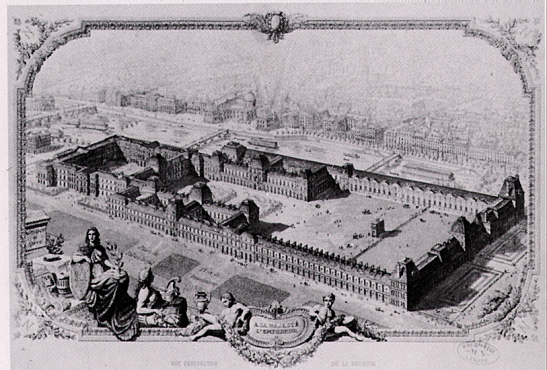 Initial strong hold Louvre from which only the bases remained occupied the fourth part of the territory of the present Square yard (at the left). At the time of Napoleon it is parallel to the Big gallery stretched along the river, were the buildings which formed a row of the small yards are added. The Tuileries palace is on the right.