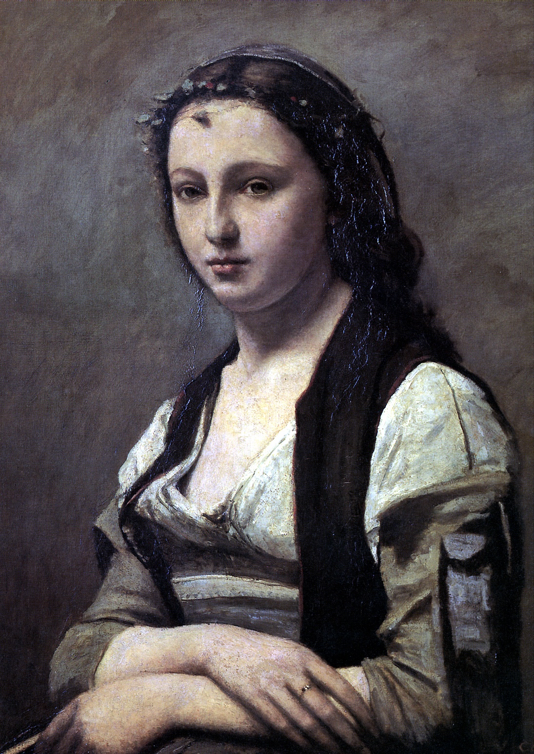COROT JEAN BAPTISTE KAMIL Woman of with pearls. Canvas, 7 x 55 cm. R.F is acquired by Louvre in 1912. 24 (G/AR) Paris, 1796-1875