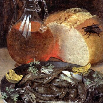 Still life with fish and a large bottle of wine. Olmyutts (Moravia), 1566 – Frankfurt am Main, 1638