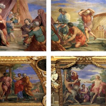 Three from four historical scenes from a ceiling of the Septimiya Severa Hall in summer apartments of the queen-mother Anna Avstriyskaya. in 1655-1658 are written.