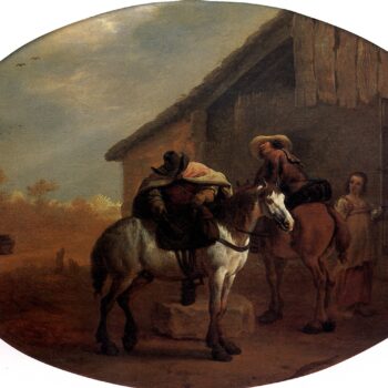 Hunters of and riders on the road.