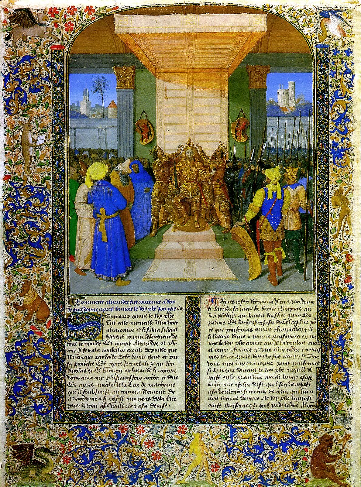 FOUQUET JEAN Alexander crowning. Tour, Nearly 142-1477/81 From Ancient history (after 147). Parchment, 45 x 34 cm. Office of figures; R.F came to Louvre in 1912. 4143 (MN)